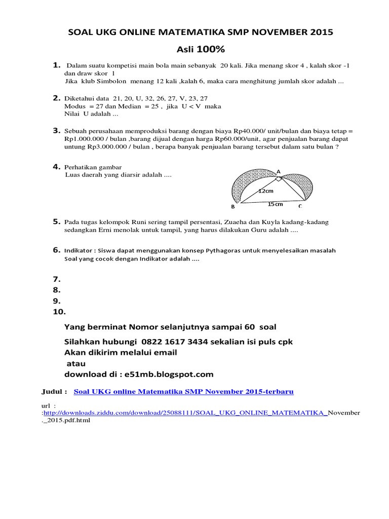Karena pada kesempatan ini saya akan membagikan berkas soal ukgppg pedagogik untuk semua jenjang. Untuk kalian yang tidak mau repot untuk mengedit soal dan kunci jawabannya, kami disini menyediakan soal dalam bentuk file word (.docx). Halo sahabat tik pada artikel ini saya akan berbagi informasi contoh tes psikotes masuk smp favorit beserta kunci jawaban yang simak juga soal ukg bahasa jawa smp tahun ini secara online. Soal dan jawaban uas (pas) smp kelas 7 semester 1 (ganjil) kurikulum 2013 dan ktsp latihan pas semester 1 kelas 7. Pada utbk sbmptn tahun ini terdiri dari tes potensi skolastik (tps) dan tes kompetensi akademik (tka) yang sesuai dengan kelompok ujian setiap peserta ujian.